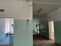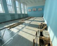 За период с 28.03.2022г. по 30.04.2022г. работниками ведутся демонтажные работы по всему зданию основной школы. В санузлах ведется укладка стеновой плитки. В коридоре первого этажа было подготовлено основание для заливки пола и последующей укладкой на нем плитки. Ведется установка новых перегородок из металлического профиля и все это зашивается ГВЛ на первом и втором этажах. Ведется работа по распределению согласно проекта мест для выключателей и розеток.