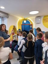 Сотрудники библиотеки радушно встретили учеников и провели интересную экскурсию по отсекам станции. Заведующая библиотекой Елена Петровна Докучаева рассказала, как изменилась библиотека после ремонта, показала, как по-новому работают библиотекари. У читателей появился электронный формуляр, а книги вносятся туда через штрих код. Много кружков и клубов по интересам организованно в библиотеке. А фонд библиотеки привел в восторг не только детей, но и классного руководителя.