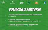 Принять участие могут Учащиеся общеобразовательных организаций в возрасте от 14 до 18 лет; Студенты профессиональных образовательных организаций в возрасте от 16 до 20 лет; Студенты образовательных организаций высшего образования (далее – вузов) в возрасте от 18 до 35 лет.